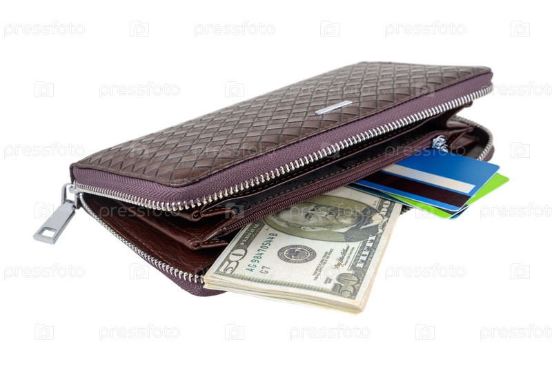 Кошелек с долларами и картой