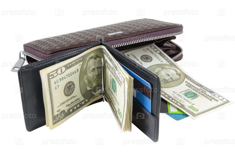Кошелек с долларами и картой