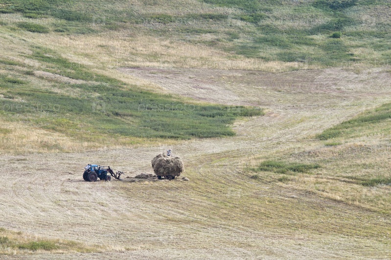 Скошенное сено на склоне холма