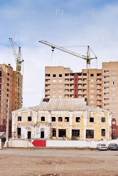 Старое здание на фоне новостроек