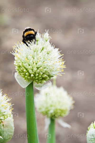 Шмель на цветущем луке