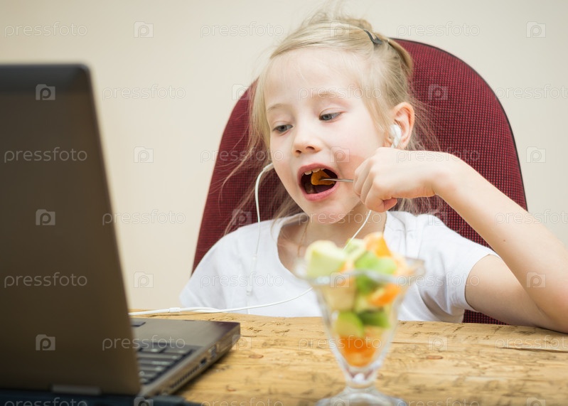 Девочка ест фруктовый салат
