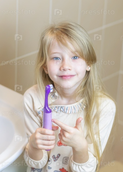 Красивая девочка чистит зубы