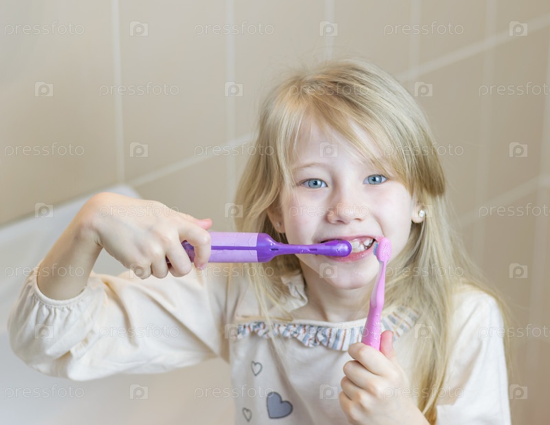 Красивая девочка чистит зубы