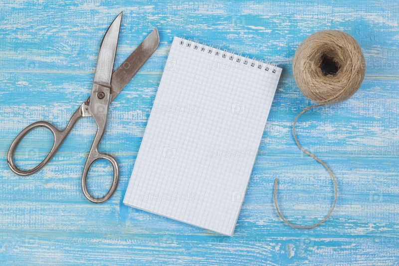 Ножницы, блокнот и веревка