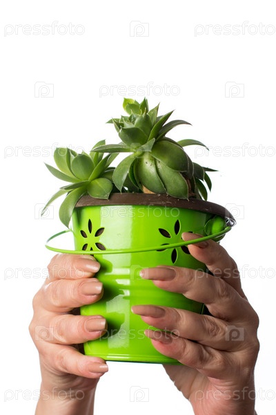 Руки с цветком в горшке