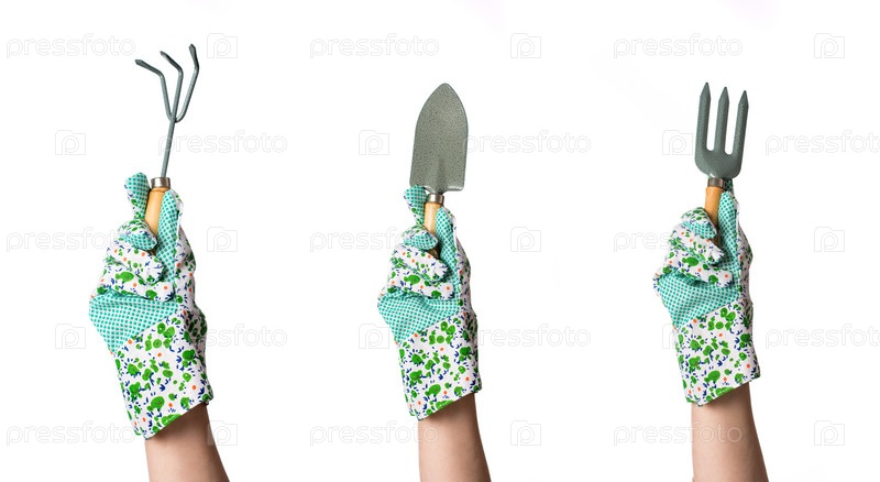 Руки в садовых перчатках с инструментами