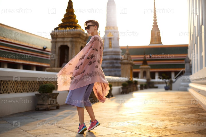 Красивая девушка, изучающая храм
