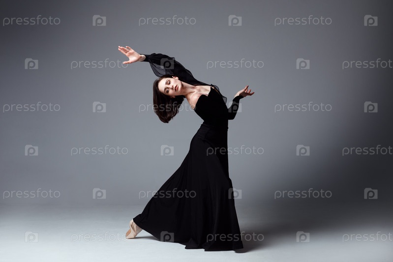 Изящная балерина в черном длинном платье