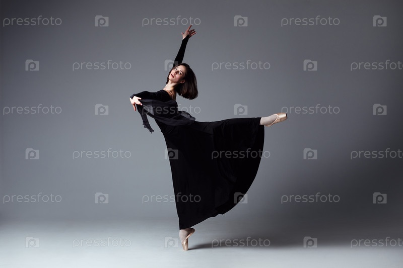 Изящная балерина в черном длинном платье