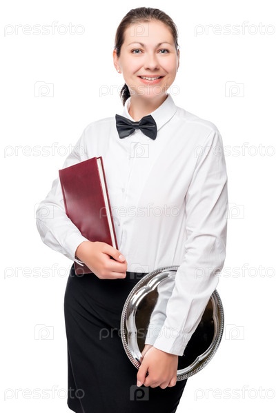 Девушка в униформе официантки