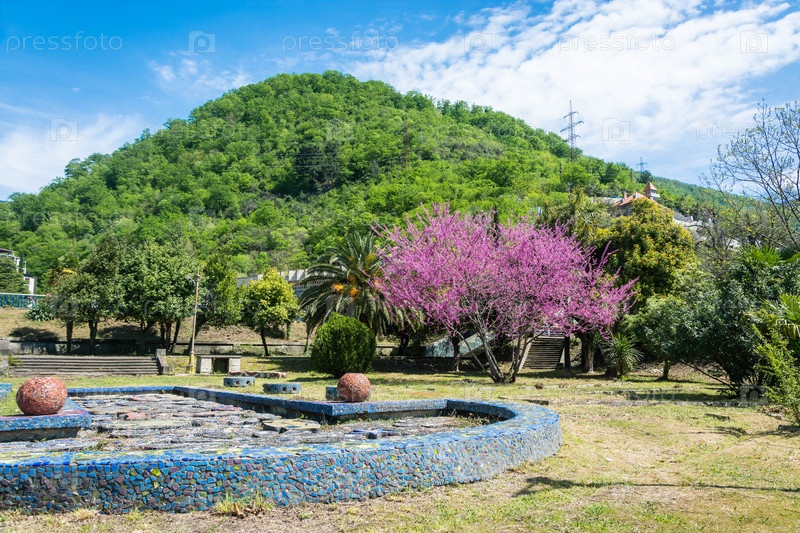 Весенний пейзаж с розовым деревом