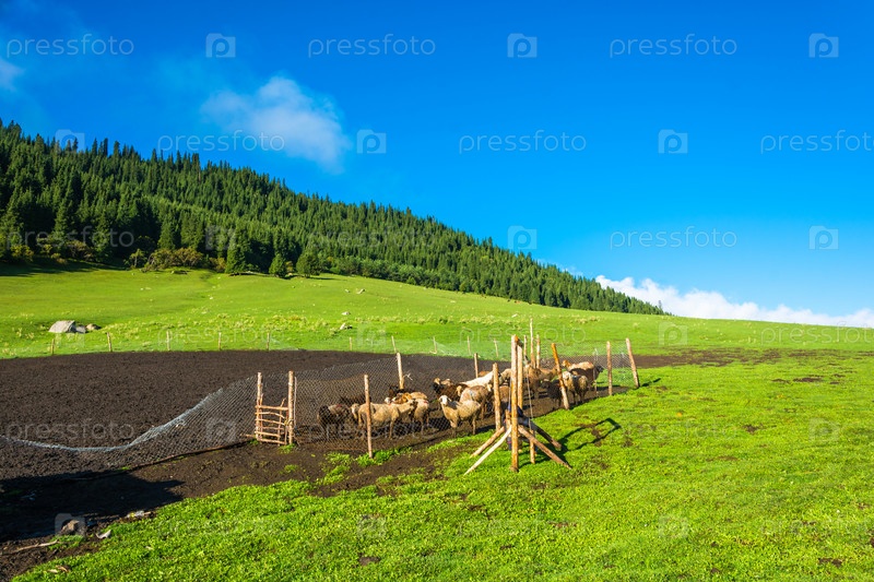 Стадо овец в паддоке, Кыргызстан