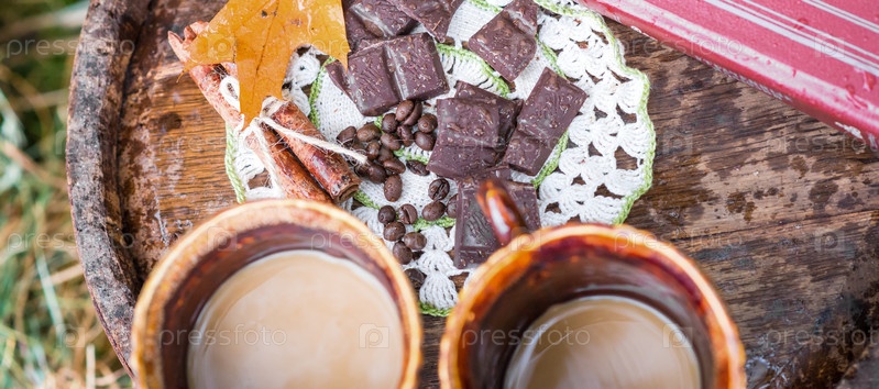 Две чашки кофе и шоколад