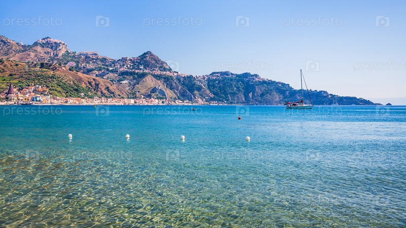 Вид на город Таормина и курорт Джардини Наксос