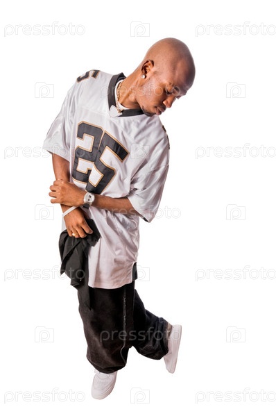 Молодой мужчина танцует хип-хоп, изолированный на белом фоне