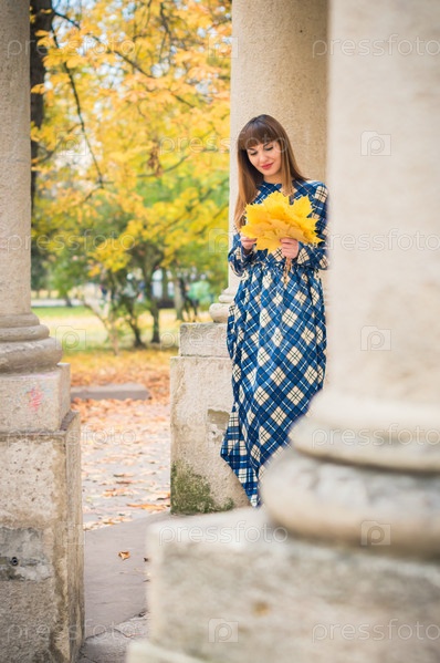 Красивая девушка в парке осенью