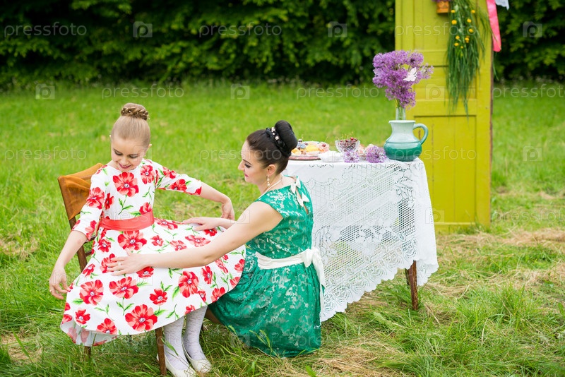 Мама с дочерью на пикнике