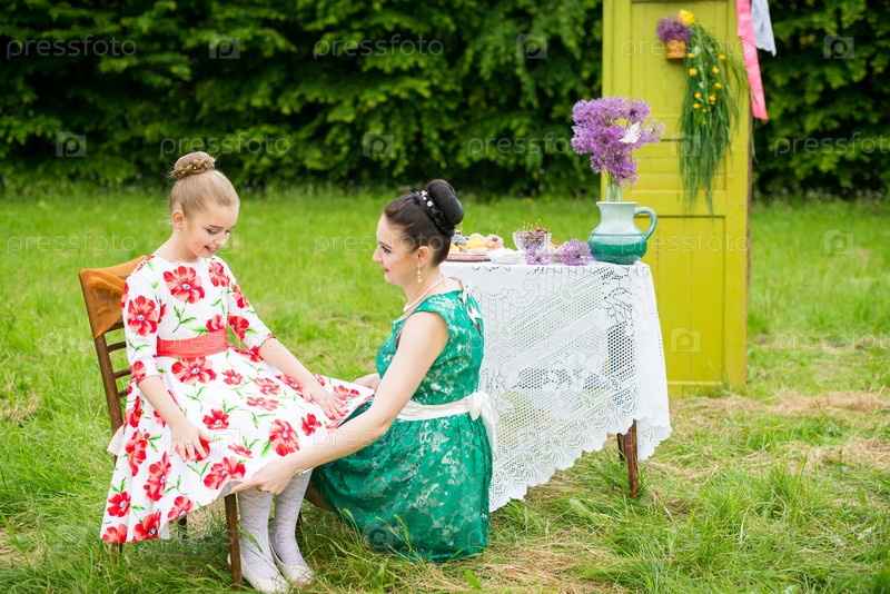 Мама с дочерью на пикнике