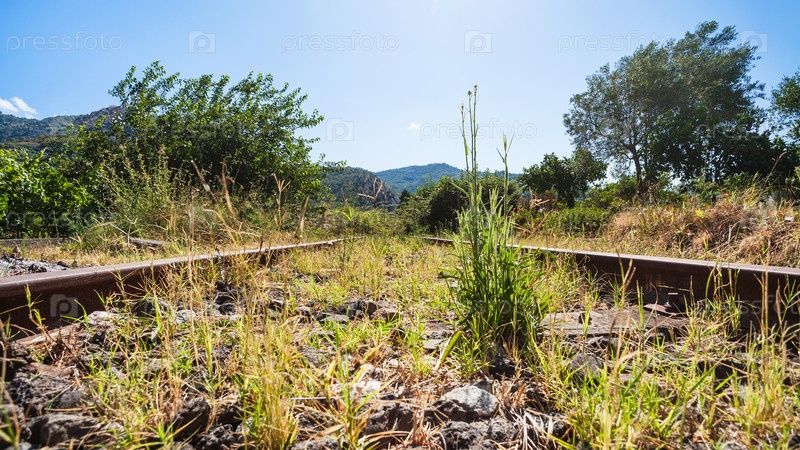 Зеленая трава на старой железной дороге в Сицилии
