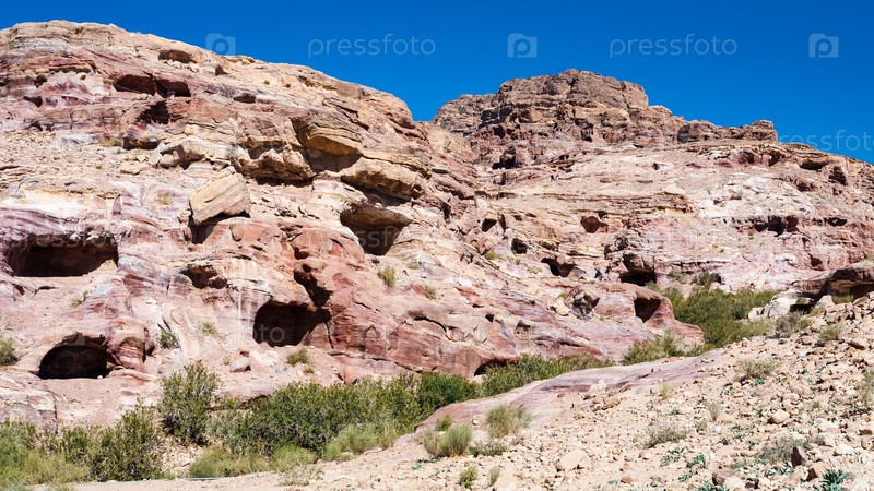 Древние пещеры в городе Петра зимой
