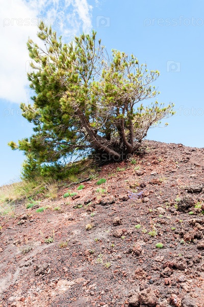 Сосна на красной вулканической почве на склоне Этны