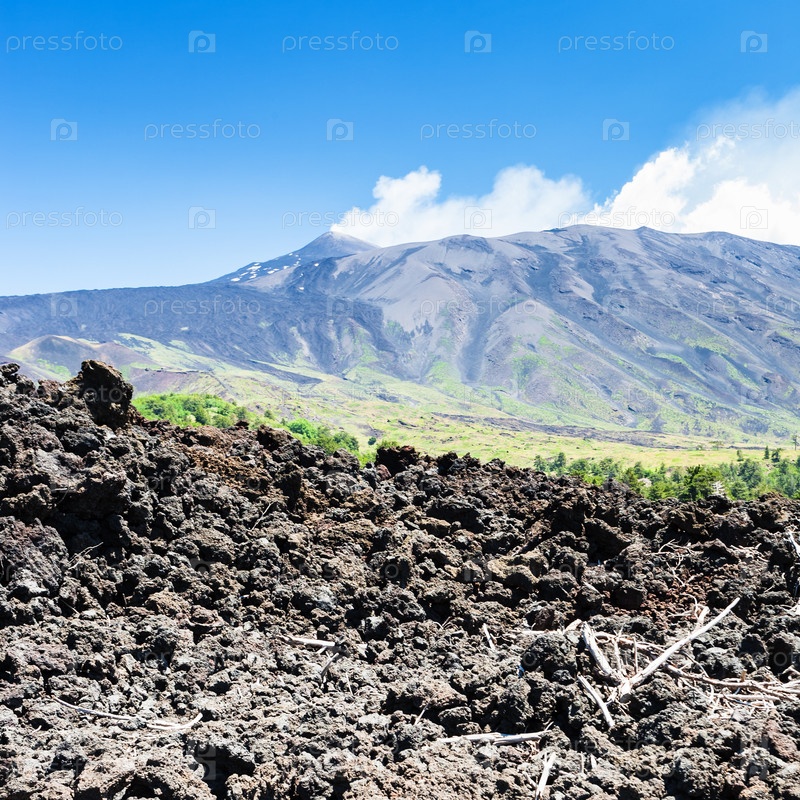 Вид окаменевшей лавы на склоне вулкана Этна
