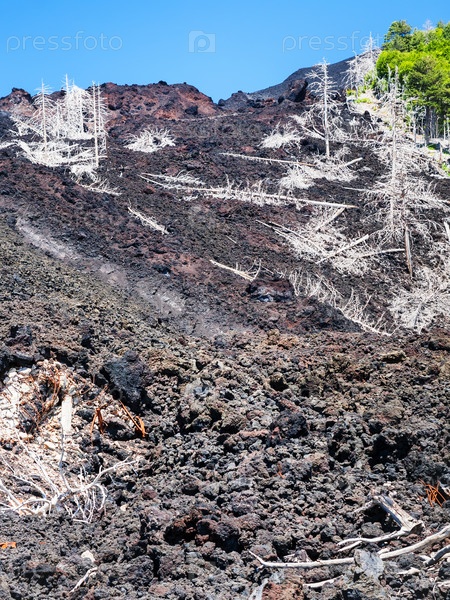 Вид закаленного потока лавы на склоне Этны