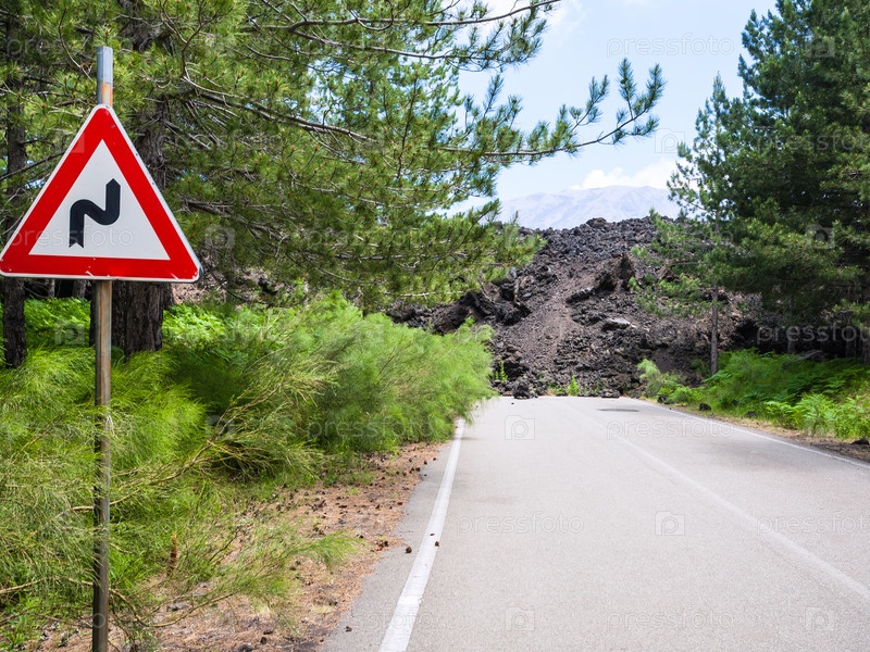 Закаленный поток лавы закрыл дорогу на склоне Этны