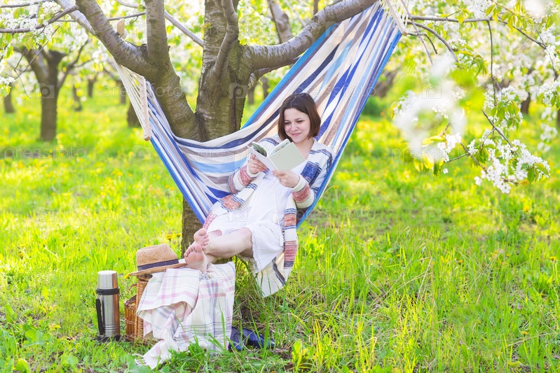 Красивая беременная женщина в гамаке