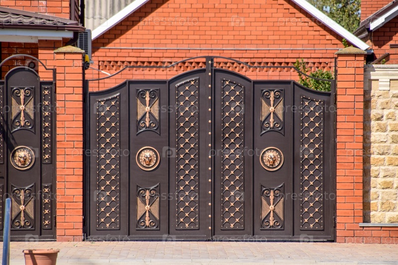Ворота из листов коричневого металла