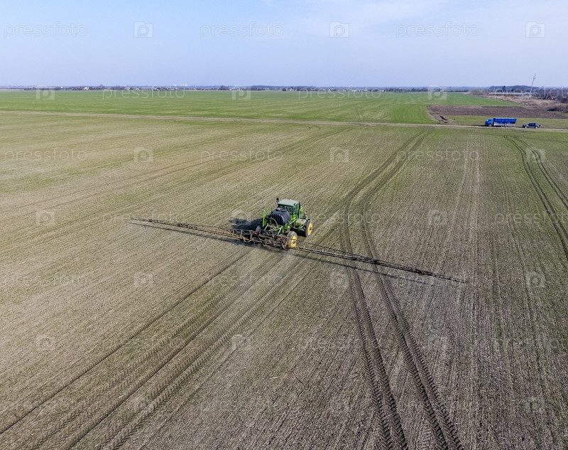 Трактор с навесной системой распыления пестицидов