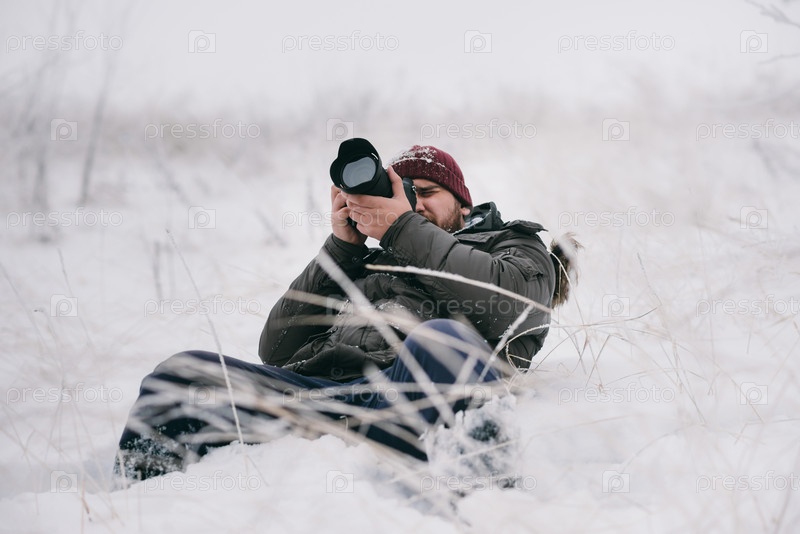Фотограф-путешественник в зимнем лесу