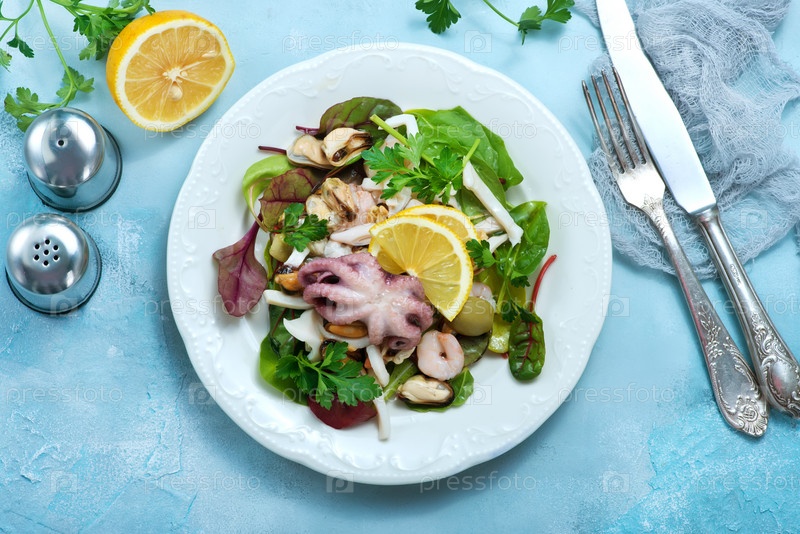 Свежий салат с морепродуктами