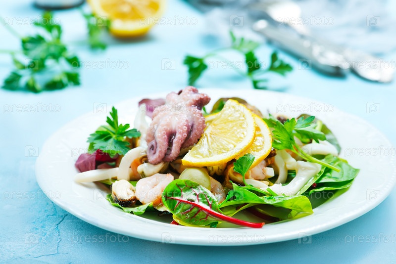 Свежий салат с морепродуктами