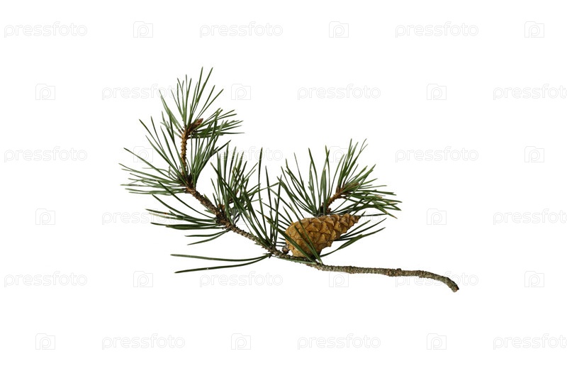 Сосновая веточка на белом фоне