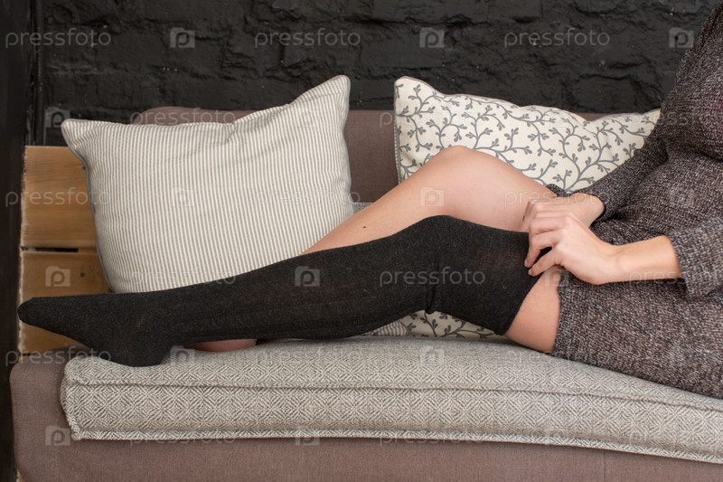 Женщины надевают черные чулки
