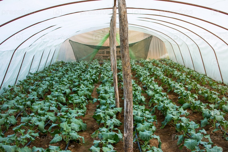 Овощи, растущие в небольшой теплице