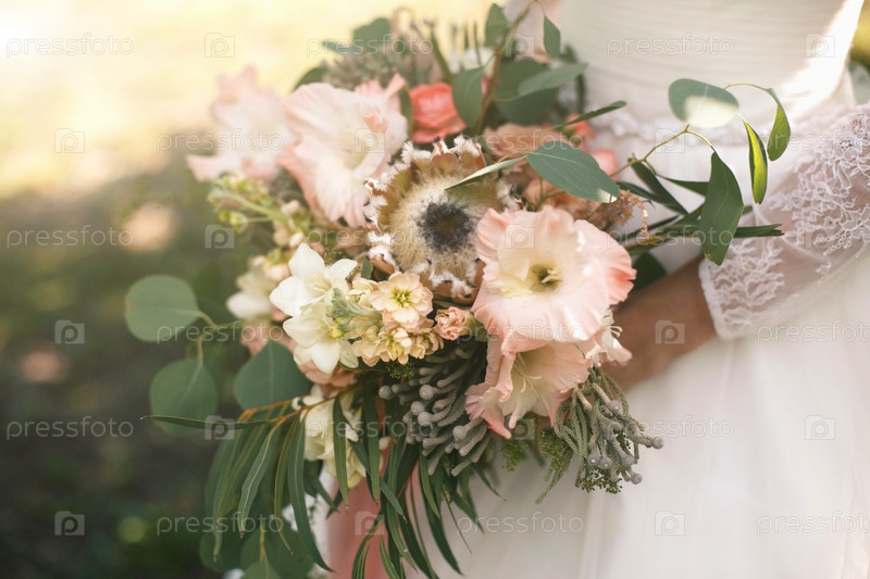 Свадебный букет экзотических цветов и зелени