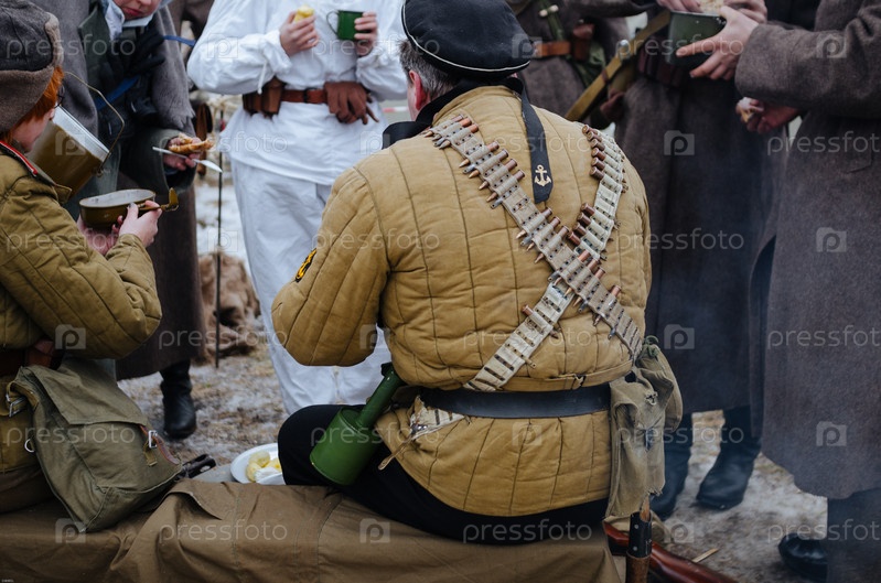 Советские солдаты едят во время военной реконструкции второй мировой войны