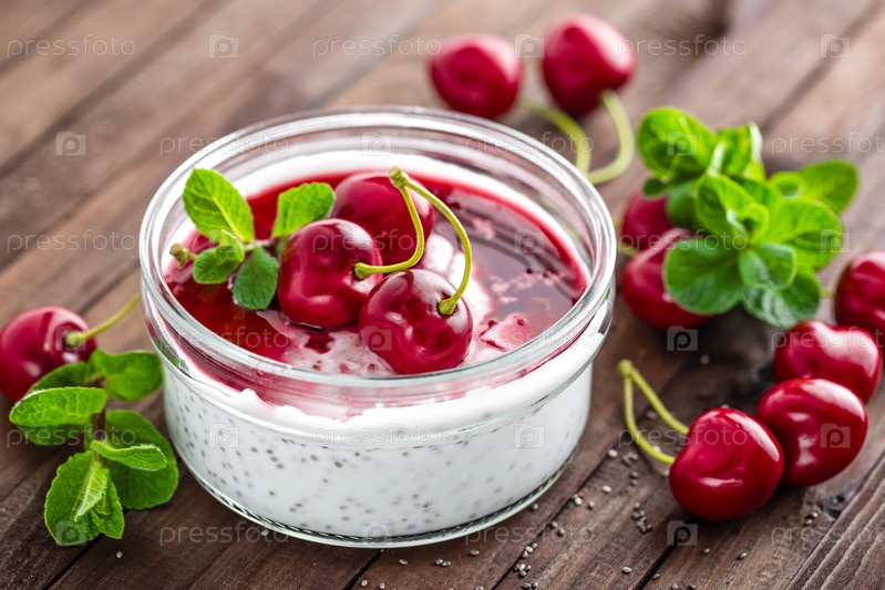 Свежий йогурт с семенами чиа и вишней
