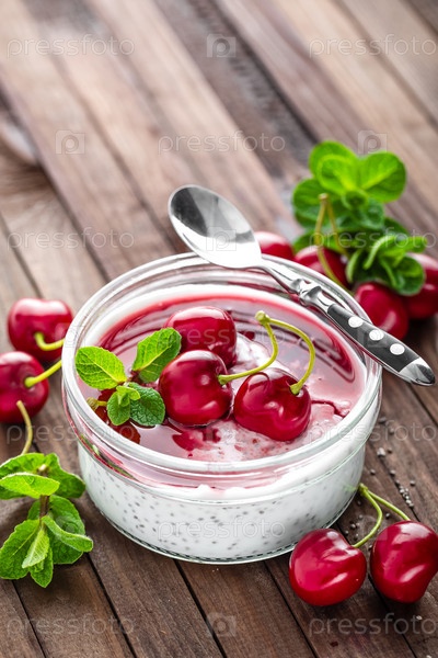 Свежий йогурт с семенами чиа и вишней