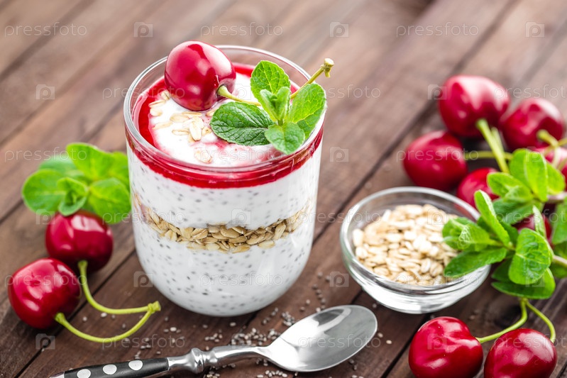 Свежий йогурт с семенами чиа и вишней