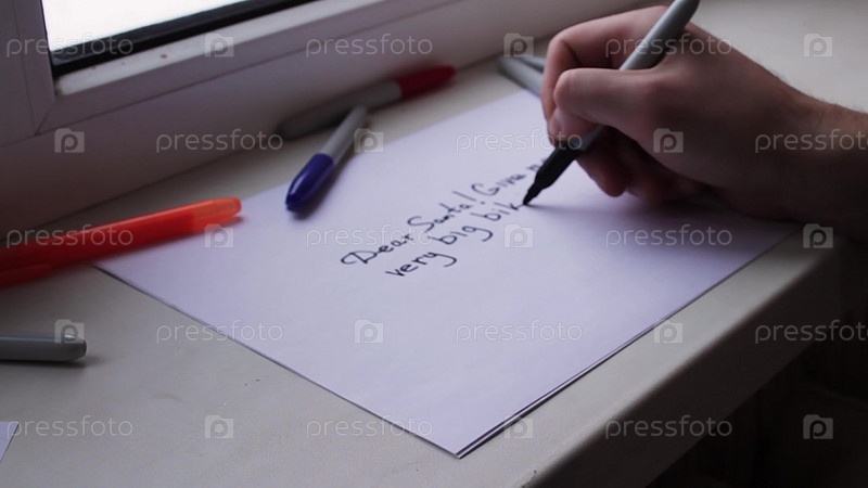 Человек пишет письмо Деду Морозу