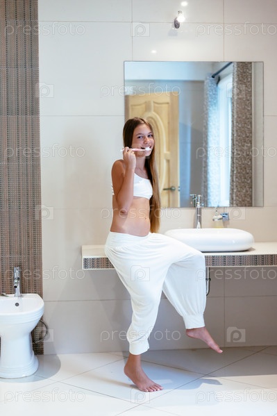 Девочка чистит зубы