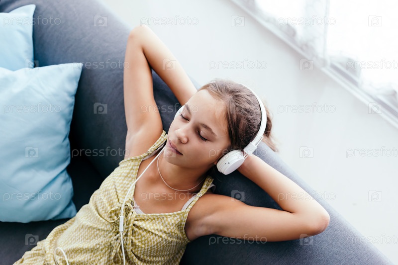 Девочка слушает музыку в наушниках