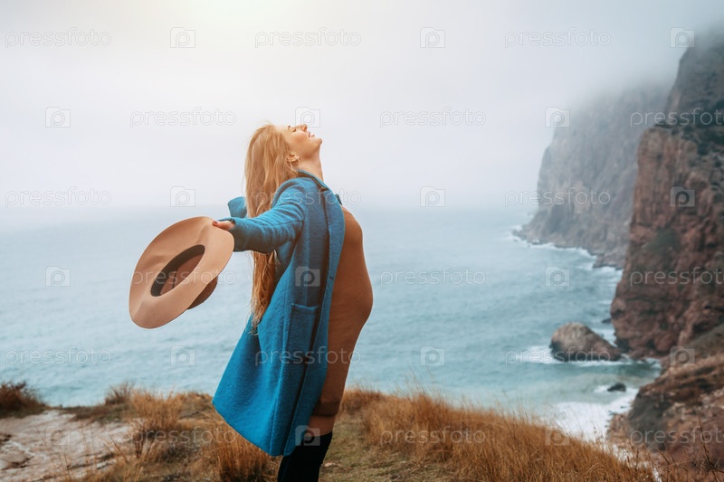 Беременная девушка в горах
