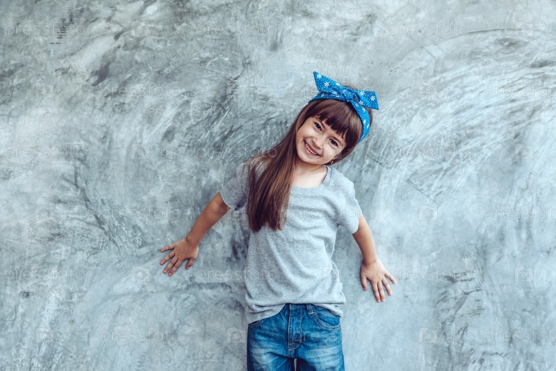 Девочка в серой футболке у стены