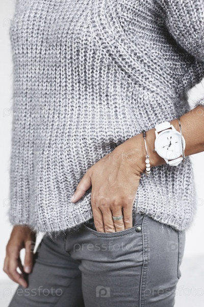 Детали модного наряда в сером цвете
