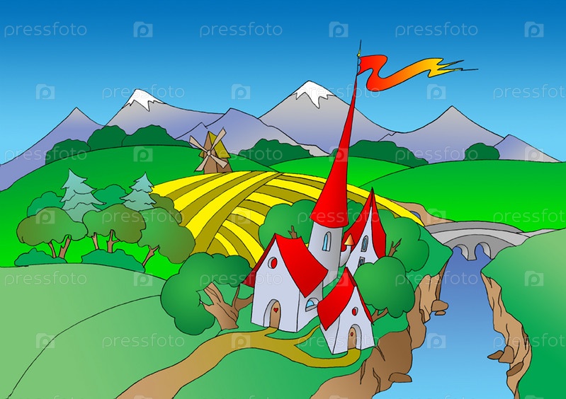 Маленькая сказочная деревня у реки